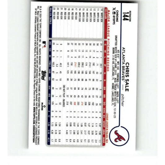2024 Topps Chrome Refractor #144 Chris Sale NM-MT Atlanta Braves Baseball Card