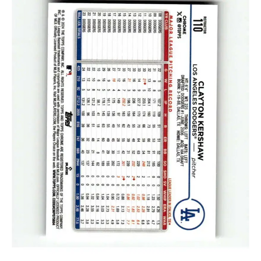 2024 Topps Chrome Refractor #110 Clayton Kershaw NM-MT Los Angeles Dodgers Baseball Card