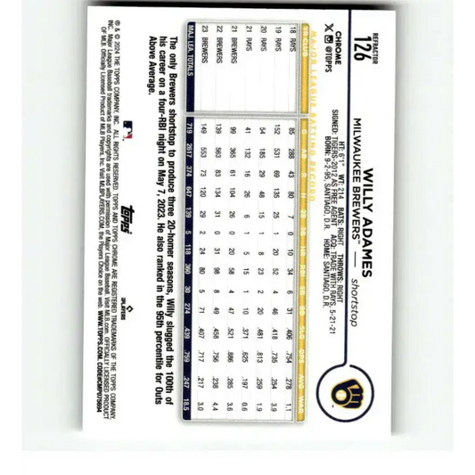 2024 Topps Chrome Refractor #126 Willy Adames NM-MT Milwaukee Brewers Baseball Card