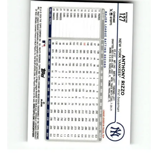 2024 Topps Chrome Refractor #127 Anthony Rizzo NM-MT New York Yankees Baseball Card