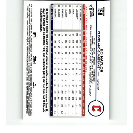 2024 Topps Chrome Refractor #158 Bo Naylor NM-MT Cleveland Guardians Baseball Card