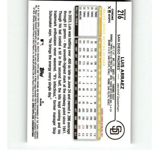 2024 Topps Chrome Refractor #216 Luis Arraez NM-MT San Diego Padres Baseball Card