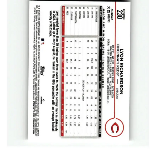 2024 Topps Chrome Refractor #230 Lyon Richardson NM-MT RC Rookie Cincinnati Reds Baseball Card