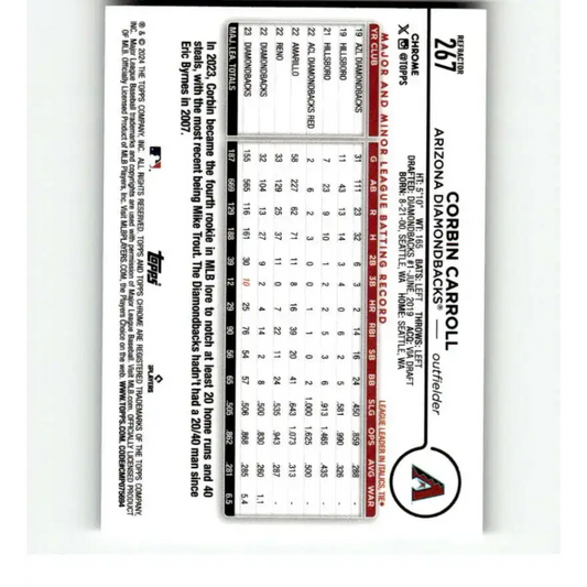 2024 Topps Chrome Refractor #267 Corbin Carroll NM-MT Arizona Diamondbacks Baseball Card