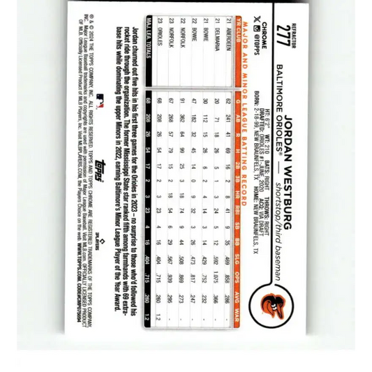 2024 Topps Chrome Refractor #277 Jordan Westburg NM-MT RC Rookie Baltimore Orioles Baseball Card