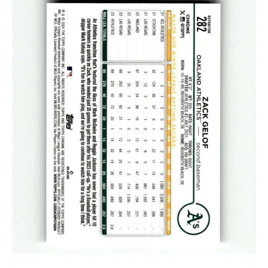 2024 Topps Chrome Refractor #282 Zack Gelof NM-MT RC Rookie Oakland Athletics Baseball Card