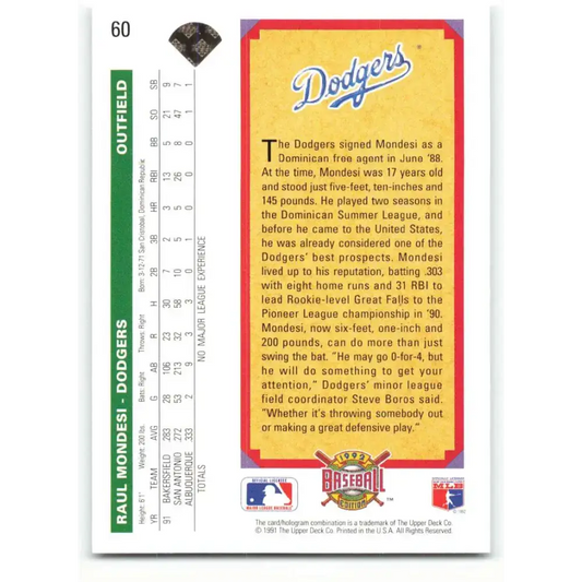 1992 Upper Deck #60 Raul Mondesi NM-MT Los Angeles Dodgers Baseball Card