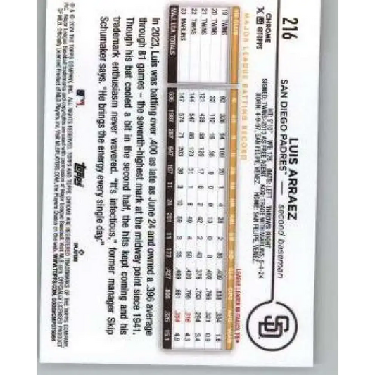 2024 Topps Chrome #216 Luis Arraez NM-MT San Diego Padres Baseball Card