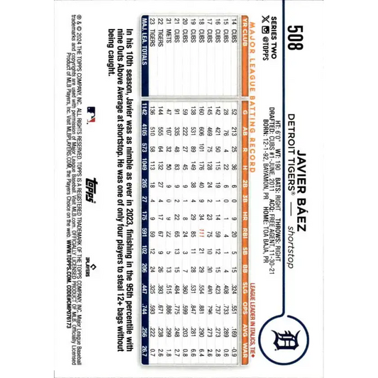 2024 Topps #508 Javier Baez NM-MT Detroit Tigers Baseball Card
