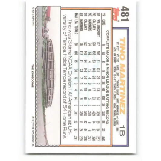 1992 Topps #481 Tino Martinez EX Excellent Seattle Mariners Baseball Card