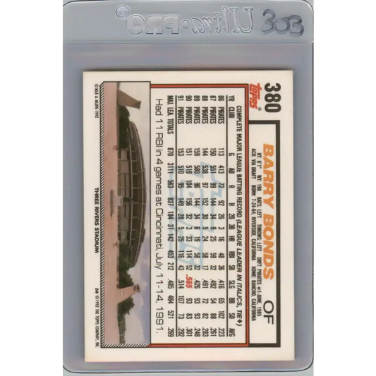 1992 Topps #380 Barry Bonds EX Excellent Pittsburgh Pirates Baseball Card