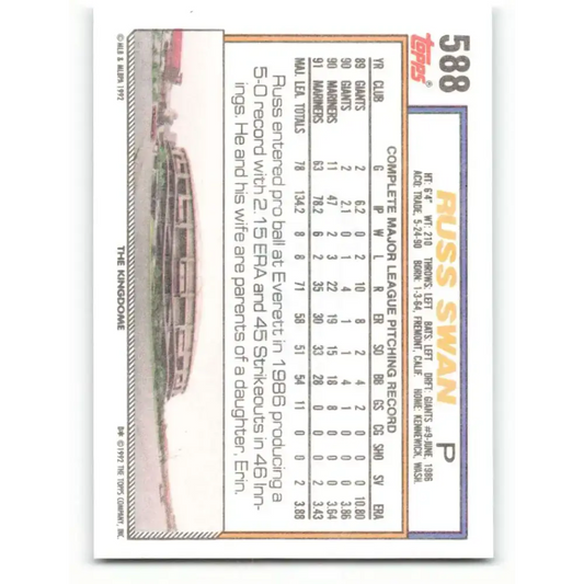 1992 Topps #588 Russ Swan EX Excellent Seattle Mariners Baseball Card