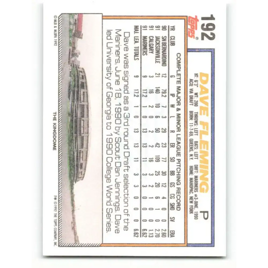 1992 Topps #192 Dave Fleming EX Excellent Seattle Mariners Baseball Card