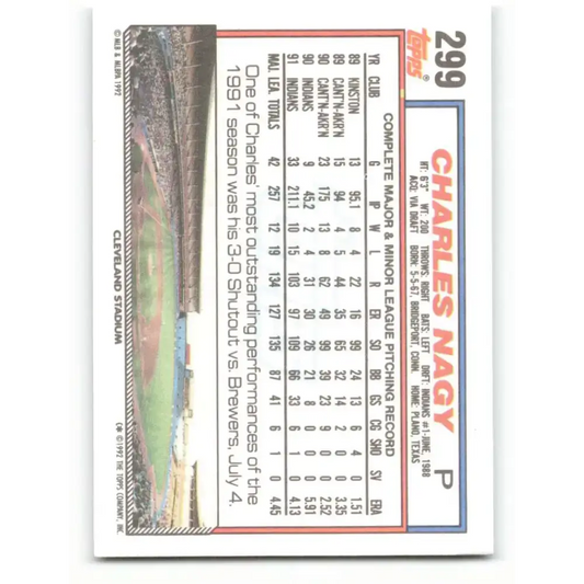 1992 Topps #299 Charles Nagy EX Excellent Cleveland Indians Baseball Card