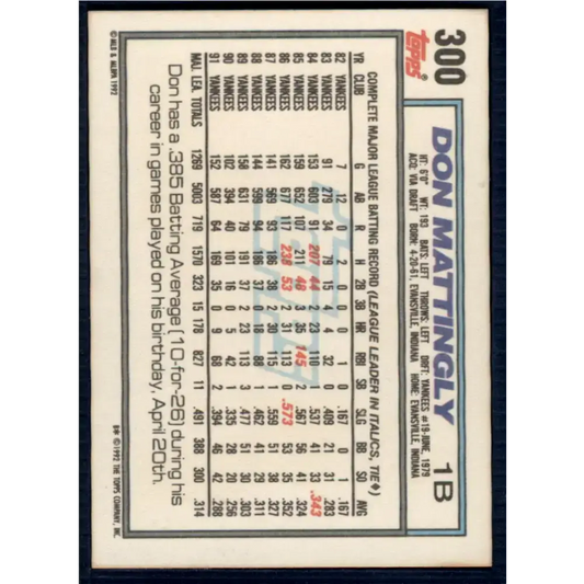 1992 Topps #300 Don Mattingly EX Excellent New York Yankees Baseball Card