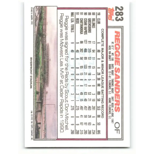 1992 Topps #283 Reggie Sanders EX Excellent Cincinnati Reds Baseball Card