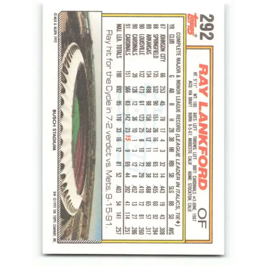 1992 Topps #292 Ray Lankford EX Excellent St. Louis Cardinals Baseball Card
