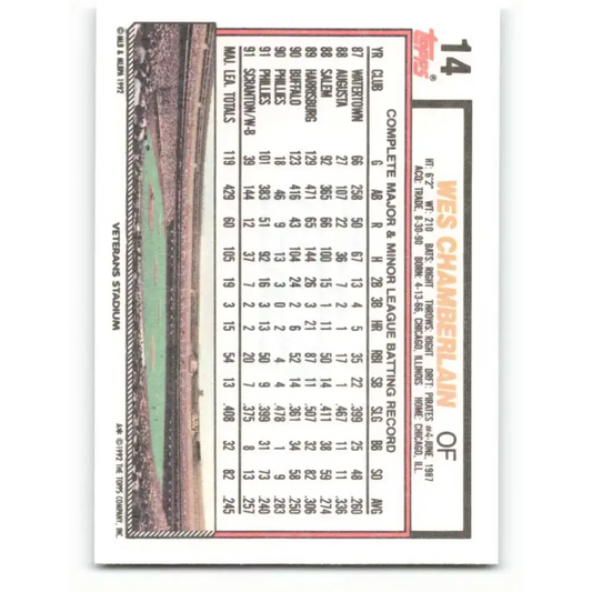 1992 Topps #14 Wes Chamberlain EX Excellent Philadelphia Phillies Baseball Card
