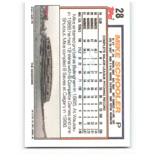 1992 Topps #28 Mike Schooler EX Excellent Seattle Mariners Baseball Card