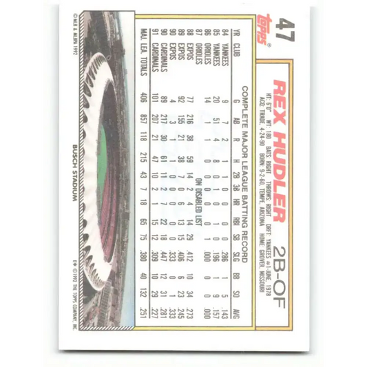 1992 Topps #47 Rex Hudler EX Excellent St. Louis Cardinals Baseball Card