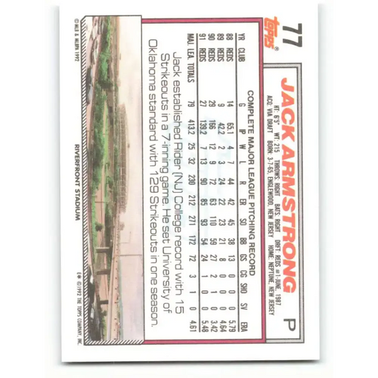 1992 Topps #77 Jack Armstrong EX Excellent Cincinnati Reds Baseball Card