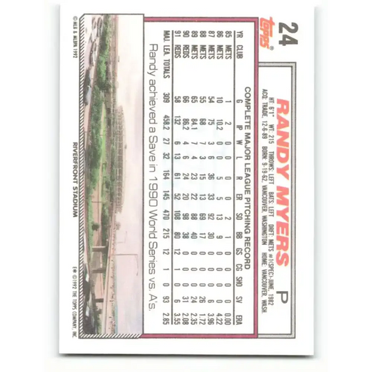 1992 Topps #24 Randy Myers EX Excellent Cincinnati Reds Baseball Card