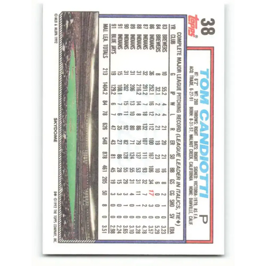 1992 Topps #38 Tom Candiotti EX Excellent Toronto Blue Jays Baseball Card