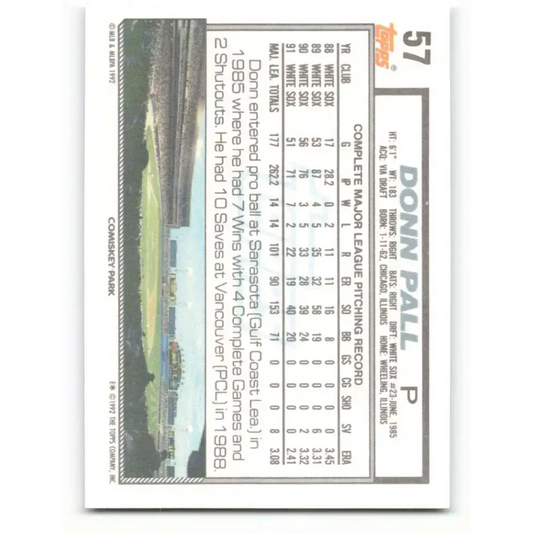 1992 Topps #57 Donn Pall EX Excellent Chicago White Sox Baseball Card