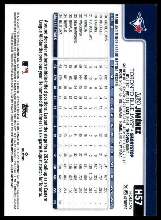 2025 Topps Holiday Leo Jimenez Rookie #H57 Toronto Blue Jays Baseball Card MLB