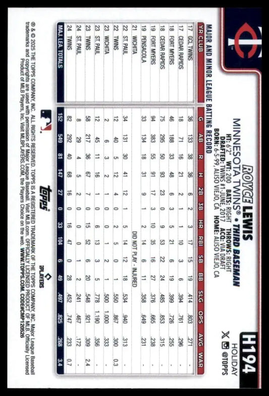 2025 Topps Holiday Royce Lewis #H194 Minnesota Twins Baseball Card MLB Sports