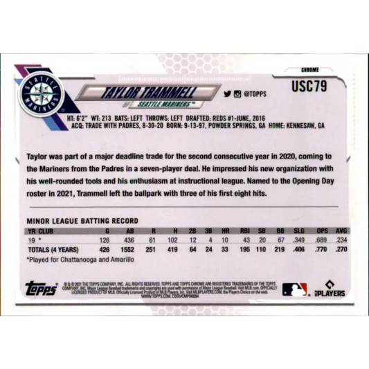 2021 Topps Chrome Update #USC79 Taylor Trammell NM-MT RC Rookie Seattle Mariners Baseball Card