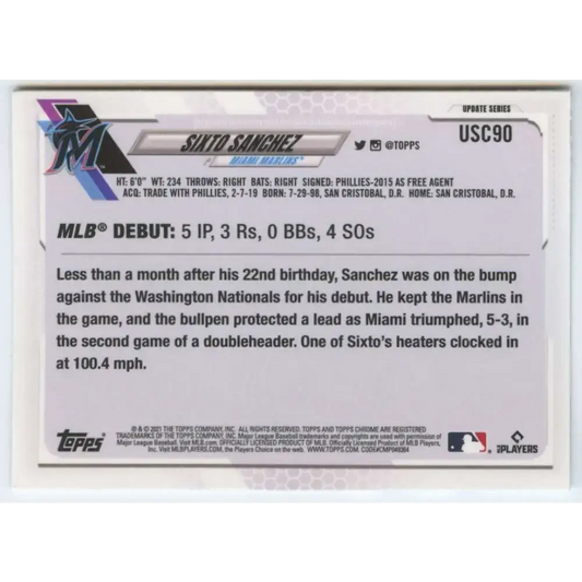 2021 Topps Chrome Update #USC90 Sixto Sanchez NM-MT RC Rookie Miami Marlins Baseball Card