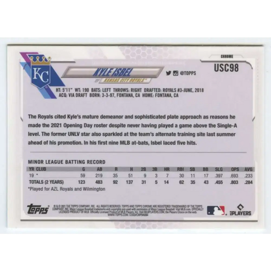 2021 Topps Chrome Update #USC98 Kyle Isbel NM-MT RC Rookie Kansas City Royals Baseball Card
