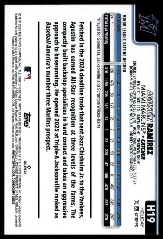 2025 Topps Holiday Agustin Ramirez Rookie #H19 Miami Marlins Baseball Card MLB