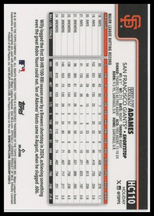 2025 Topps Holiday Chrome Blue Sparkle /199 #HC110 San Francisco Giants Baseball