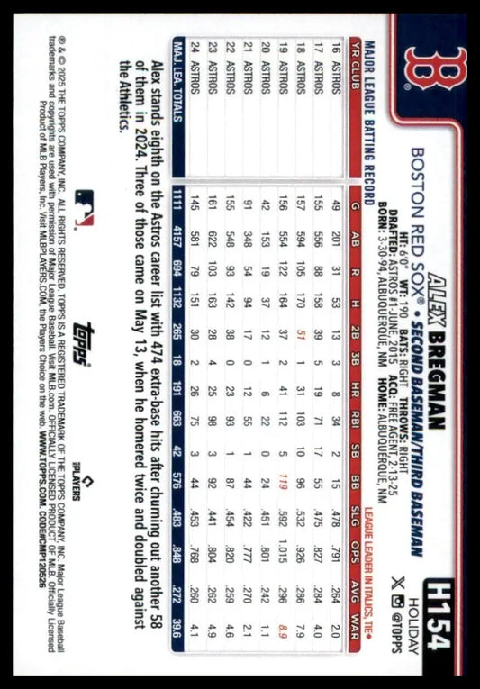 2025 Topps Holiday Glitter Alex Bregman #H154 Boston Red Sox Baseball Card MLB