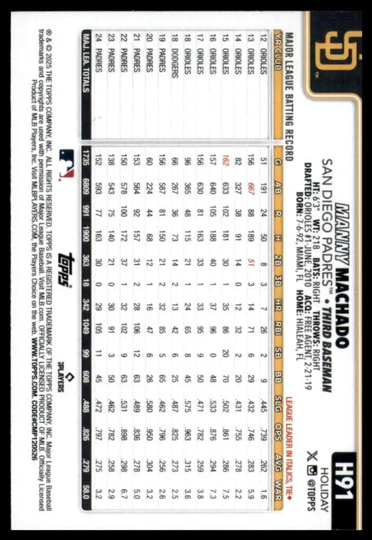 2025 Topps Holiday Glitter Manny Machado #H91 San Diego Padres Baseball Card MLB