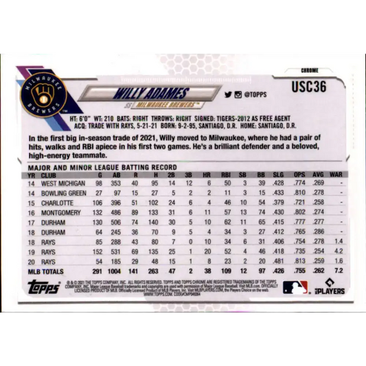 2021 Topps Chrome Update #USC36 Willy Adames NM-MT Milwaukee Brewers Baseball Card