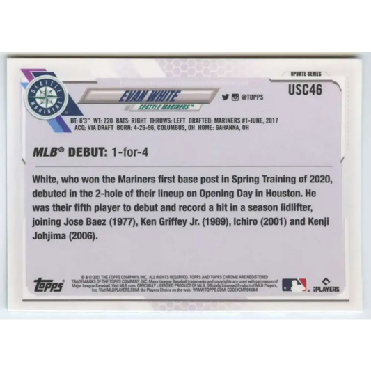 2021 Topps Chrome Update #USC46 Evan White NM-MT RC Rookie Seattle Mariners Baseball Card