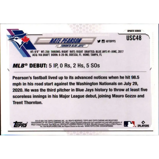 2021 Topps Chrome Update #USC48 Nate Pearson NM-MT RC Rookie Toronto Blue Jays Baseball Card