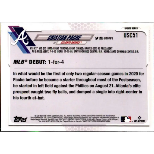 2021 Topps Chrome Update #USC51 Cristian Pache NM-MT RC Rookie Atlanta Braves Baseball Card