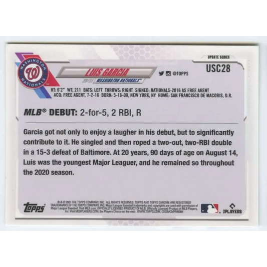 2021 Topps Chrome Update #USC28 Luis Garcia NM-MT RC Rookie Washington Nationals Baseball Card