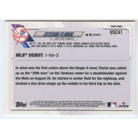 2021 Topps Chrome Update #USC41 Estevan Florial NM-MT RC Rookie New York Yankees Baseball Card