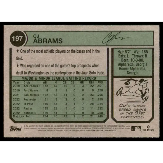 2023 Topps Heritage #197 CJ Abrams NM-MT Washington Nationals Baseball Card