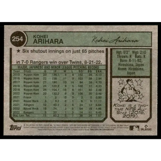 2023 Topps Heritage #254 Kohei Arihara NM-MT Texas Rangers Baseball Card
