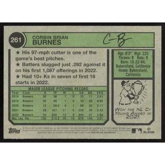 2023 Topps Heritage #261 Corbin Burnes NM-MT Milwaukee Brewers Baseball Card