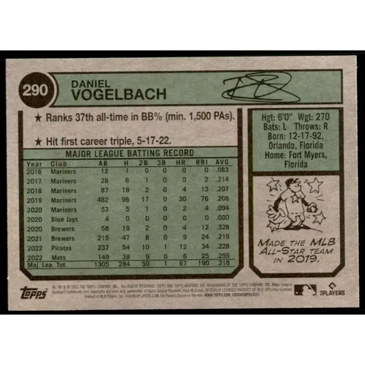 2023 Topps Heritage #290 Daniel Vogelbach NM-MT New York Mets Baseball Card
