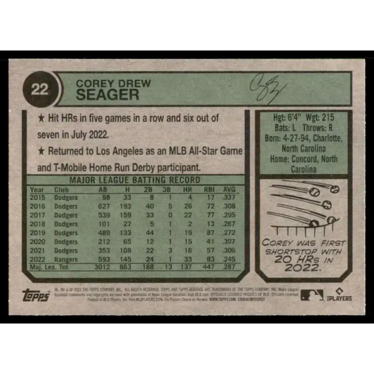 2023 Topps Heritage #22 Corey Seager NM-MT Texas Rangers Baseball Card