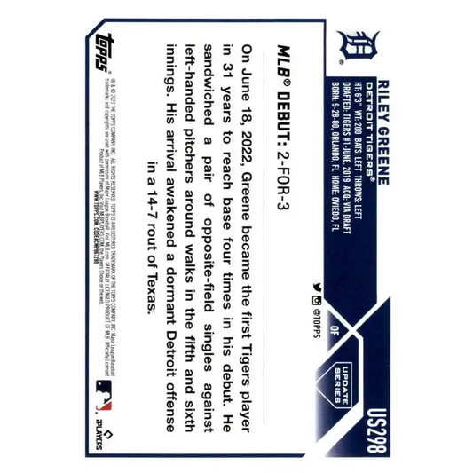 2023 Topps Update Series #US298 Riley Greene NM-MT Detroit Tigers Baseball Card
