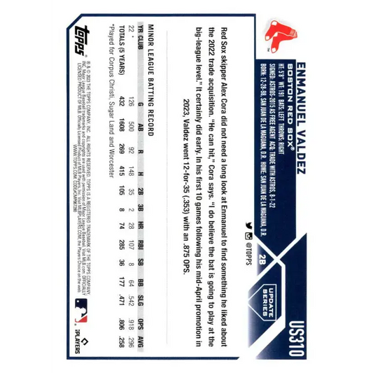 2023 Topps Update Series #US310 Enmanuel Valdez NM-MT RC Rookie Boston Red Sox Baseball Card
